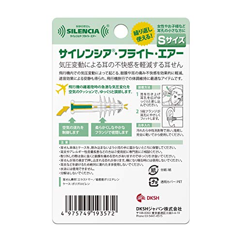 サイレンシア フライトエアー 飛行機用耳せん Sサイズ 1ペア 携帯ケース付