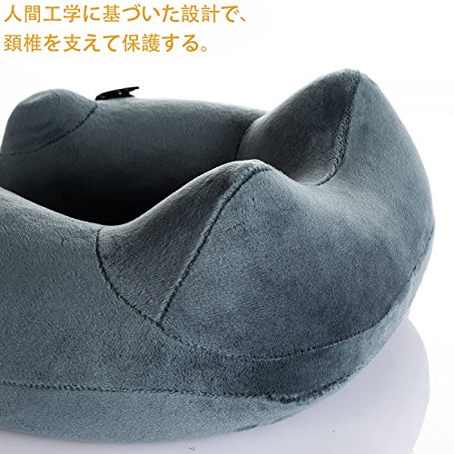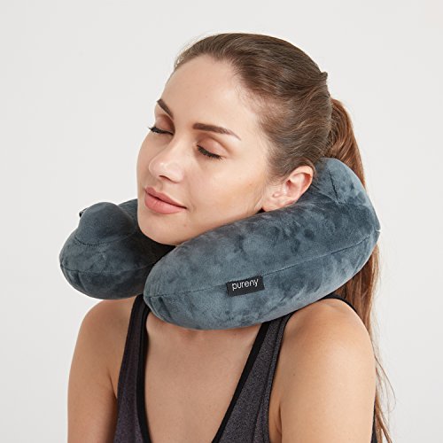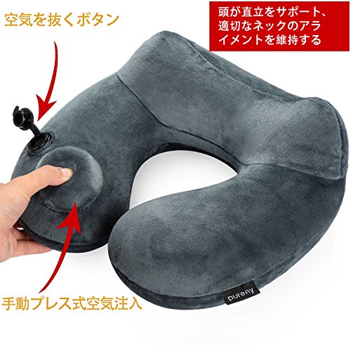 Purefly ネックピロー U型 手動プレス式膨らませる 旅行用 飛行機 バス 自宅 オフィス 収納ポーチ付