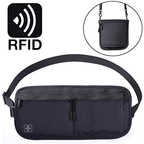 Yakia ウエストポーチ スキミング防止 2Way ウエストバッグ パスポートバッグ 首下げ 軽量 防水 旅行グッズ 貴重品入れ クラッチバッグ 盗難 セキュリティポーチ ボディバッグ パスポートケース