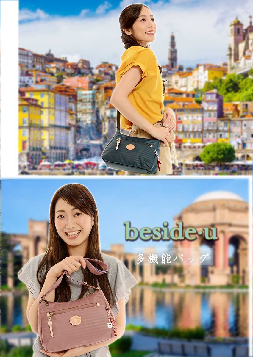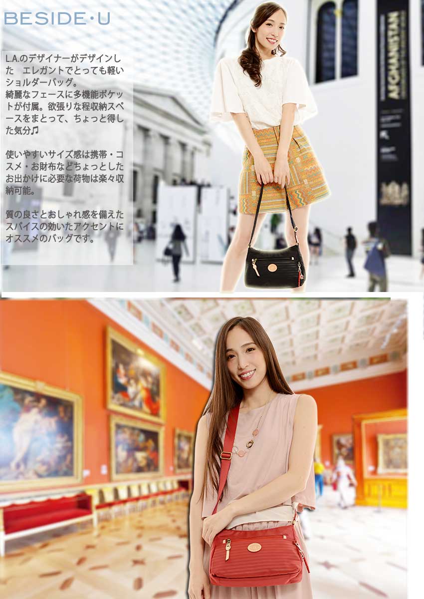 ふわ〜ッと軽い ショルダーバッグ ビサイユ BKS-040 海外旅行 ポケット たくさん バッグ 斜めがけバッグ レディース ナイロン 超軽量 機能 スキミング防止 撥水 カジュアルとビジネスの2way 海外旅行 便利グッズ 便利グッズ 小物収納