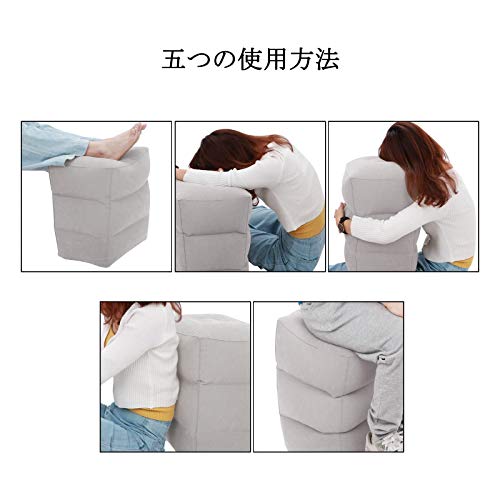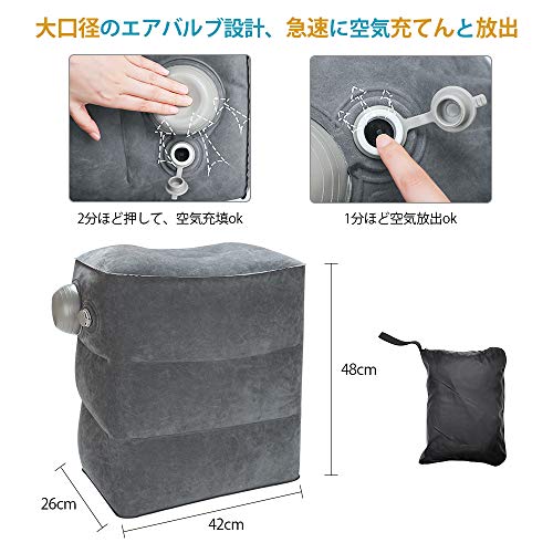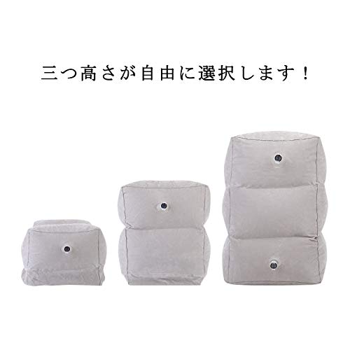 RNORRIフットレストは3段構造の空気で膨らますタイプのフットレストです。各段ごとに膨らませて高さ調節ができるので、自分好みの快適な高さで使用できます。調節によってはフットレストとしての機能はもちろんですが、抱き枕や腰枕にもなるので、用途が広がります。