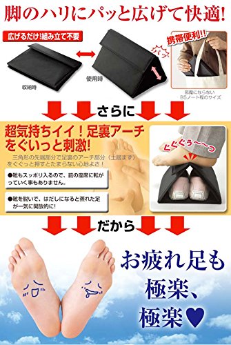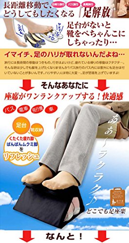 どこでも足座楽は、使いたいときに場所を選ばず広げて使える折り畳みタイプのフットレストです。B5判サイズで旅行の時の携帯に便利で、しかも足座楽の中に脱いだ靴を収納できます。場所を選ばず手軽に足の疲れを癒したいときや、移動時間を少しでも快適にしたい方に最適です。