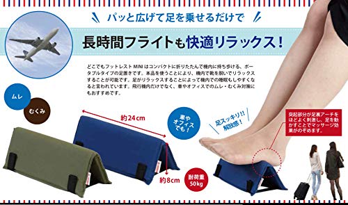 どこでもフットレストMINIは広げるだけですぐに使えて、さらにコンパクトに折り畳めて軽量で持ち運びに便利なフットレストです。小さいのでシートの幅を気にせず、携帯するにも荷物の邪魔にならないので、飛行機内やバスの中などさまざまな旅行シーンで利用できます。