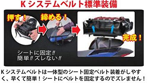 リアシートの下にベルトを通して固定する、Kシステムベルトにも対応しています。Kシステムベルトをつければ、走行中の荷物のズレが気になりません。