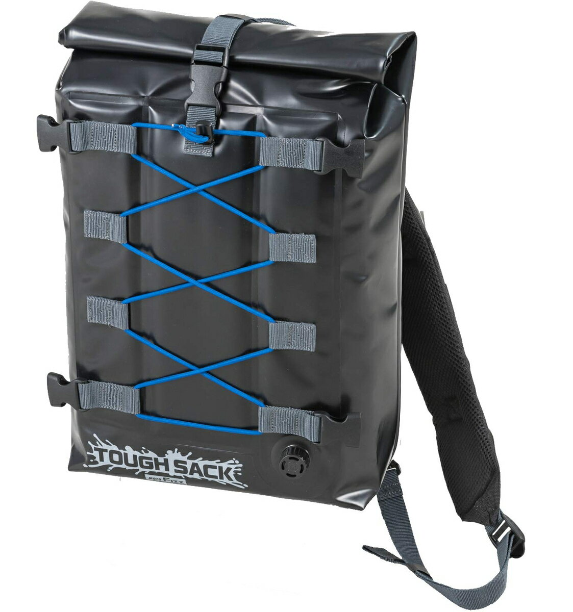 タフザックSQは、シートバッグとリュックの2ウェイタイプです。リュックにすると荷物を背負えるので、バイクを降りても重たいものをラクに運べます。エアーバブルでバック内の空気が抜けるため、衣類などを圧縮できるのも魅力です。ポケットがないので、移動中に出たいものは入れないようにしましょう。