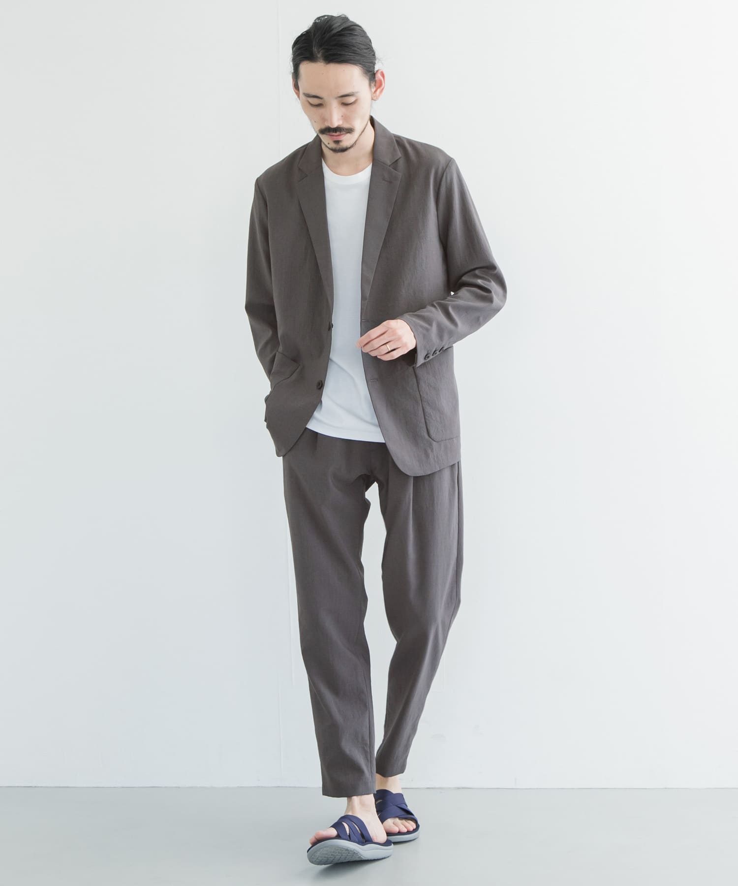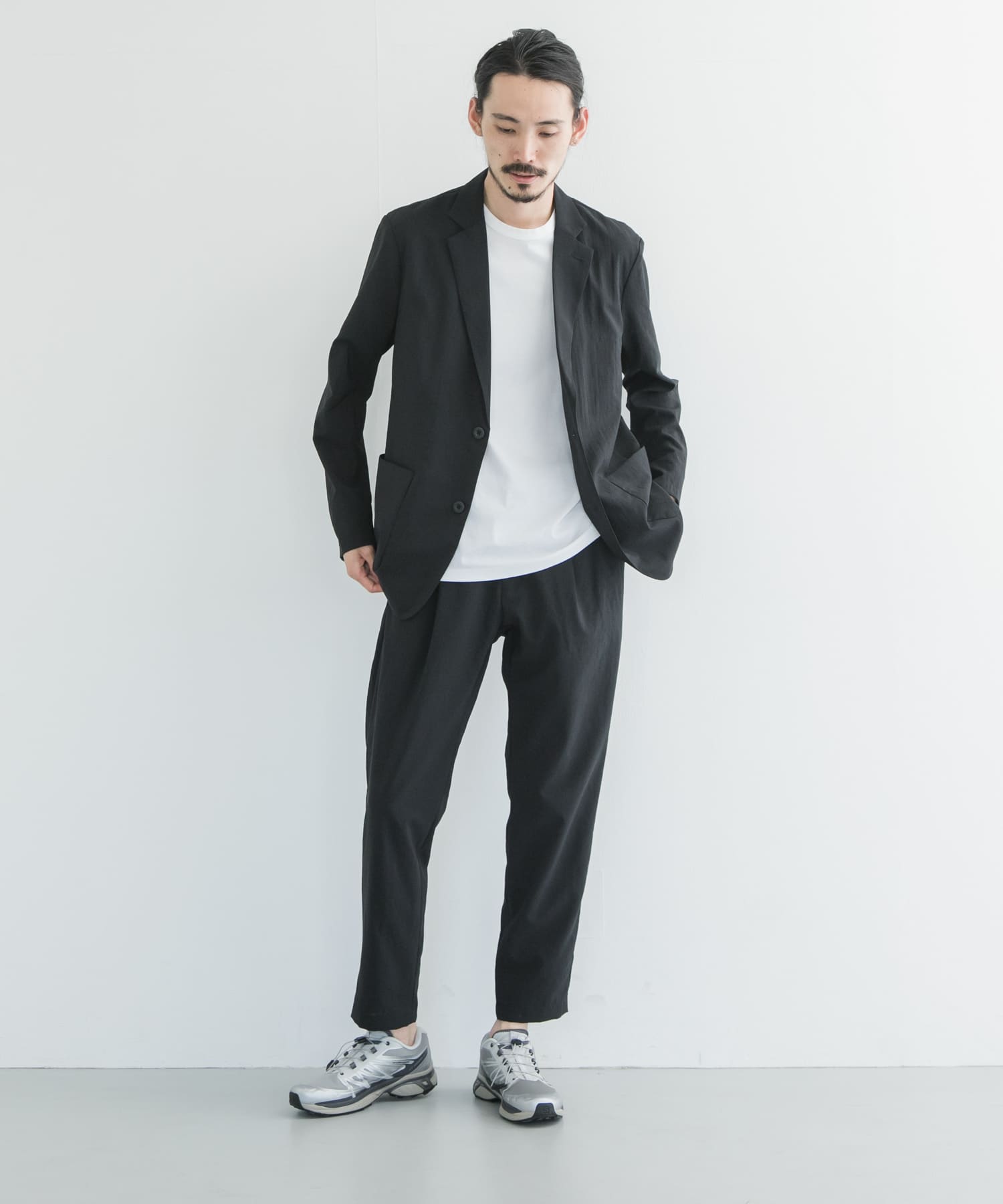 見た目のよさも話題で質感はウールによく似て高級感があり、スーツのように同じ素材のパンツとあわせるのも人気です。
