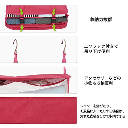 滞在先で荷物を取り出すのに、個別に収納するとどこに何を収納したかわからなくなってしまったり、帰りの時間がない中でのパッキングが大変だったなんてこともよくありますよね。このアイテムなら、滞在先のクローゼットにかけるだけなのでアンパッキングも楽々で、帰りのパッキングもそのまま畳めばいいので楽々です。