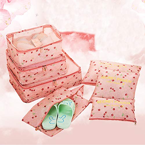 トラベルポーチ アレンジケース 7点セット トラベル アレンジケース 収納ポーチ 衣類収納 靴バッグ 洗面用具入れ pc周 辺小物用 軽量 防水 大容量 旅行 出張 整理用 チェリーピンク