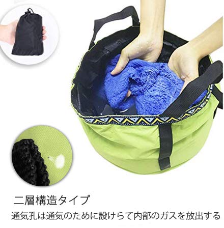 洗面台では洗いにくい時や、少しつけ置きをしたい時にとても便利です。汚れをジャブジャブと手洗いしたい方には、特に使おすすめ。防水加工をしたナイロン製やプラスチック製など様々なものがあります。バケツの大きさに応じて洗える品数も多くなりますが、それだけ荷物としてかさばるので注意が必要です。
