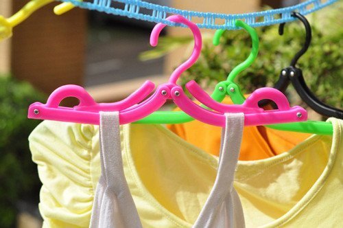 今や100円ショップでも折りたたみハンガーが売られていますが、洗濯やそれ以外でも欠かせない「使える」アイテムです。洗い物を洗濯ロープに直接掛けた場合、その分幅を取ってしまいますが、ハンガーに掛けた上で棒やロープ掛けることで使う幅はごくわずかとなり、より多くの物を干すことができます。ハンガーを掛けられるところであれば移動中に脱いだ服を掛けておくなど、洗濯以外でも活躍してくれるシーンがあります。
