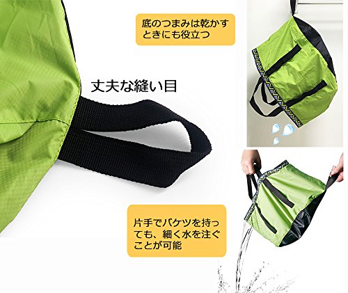 TAKU 折りたたみ バケツ 洗濯バケツ 洗い桶 コンパクト 大容量 12L 自立式 撮み付き 軽量 ソフト足湯 洗面器 防水 水汲み 持ち運び 釣り用 お掃除用 洗車 園芸 キャンプ 公園 海 子供遊び 耐熱70℃ 90日保証 2019年最新改良(グリーン)