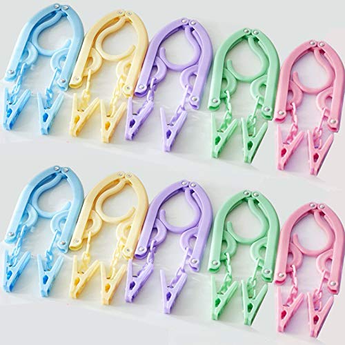 携帯ハンガー セット 折りたたみ式 旅行 出張など 洗濯 物干し 便利 軽量 5色 10個入り ピンチ20個付き