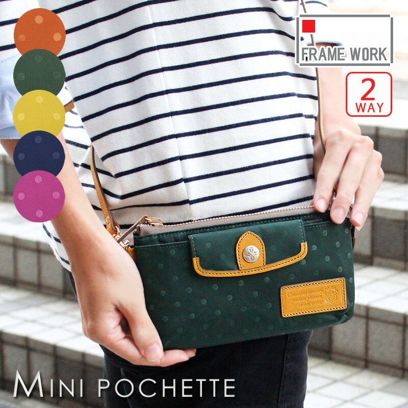 FRAME WORK フレームワーク ボヤージュ ナイロン×牛革 ドット柄 お財布ポシェット 0047316【店頭受取対応商品】