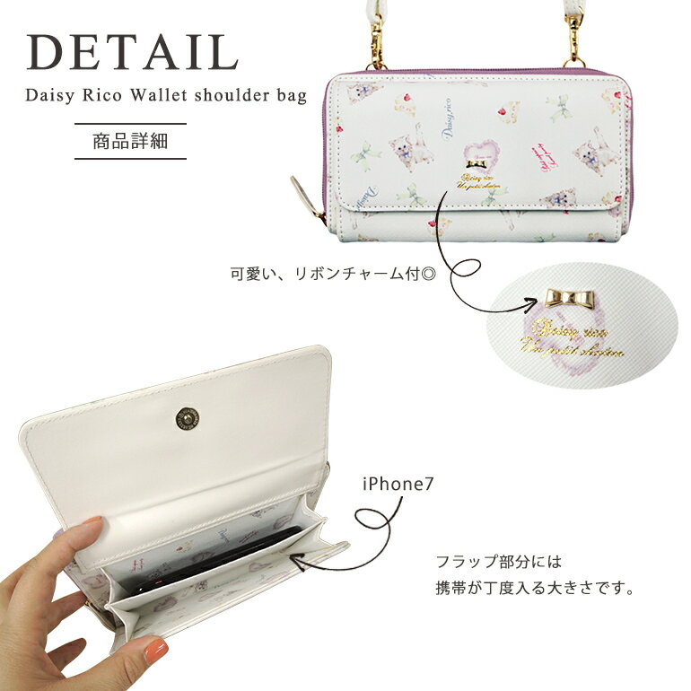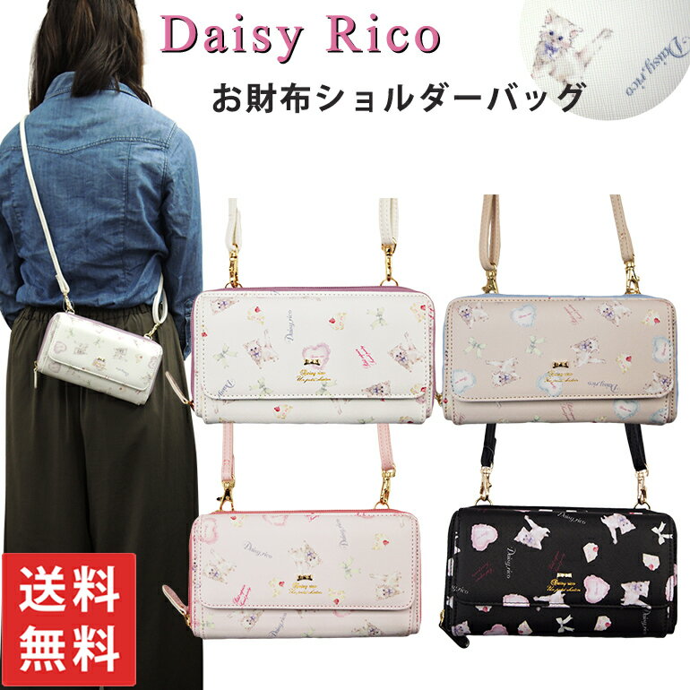 Daisy rico デイジーリコ 送料無料 お財布ショルダー お財布ポシェット 長札ウォレット ポーチ ポシェット 長札入れ 長財布 斜め掛け ねこ 猫 キャット ラウンドジップ ラウンドファスナー スマホ カードポケット カード収納 スマホ お出かけ 旅行 中学生 高校生 大学生