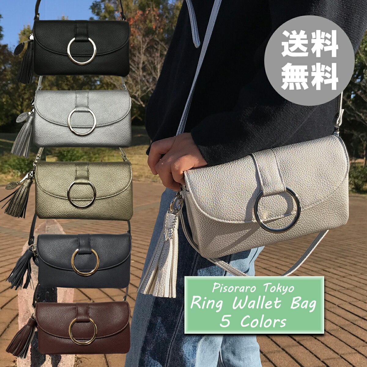 ☆新色登場☆【 ピソラロ Pisoraro 】リングウォレットバッグ お財布ポシェット お財布ショルダー IQOSケース リング 金具 斜め掛け 軽い スマホ マグネット 海外旅行 送料無料 大容量 ファスナー ポシェット ミニバッグ タッセル プレゼント ギフト レディース
